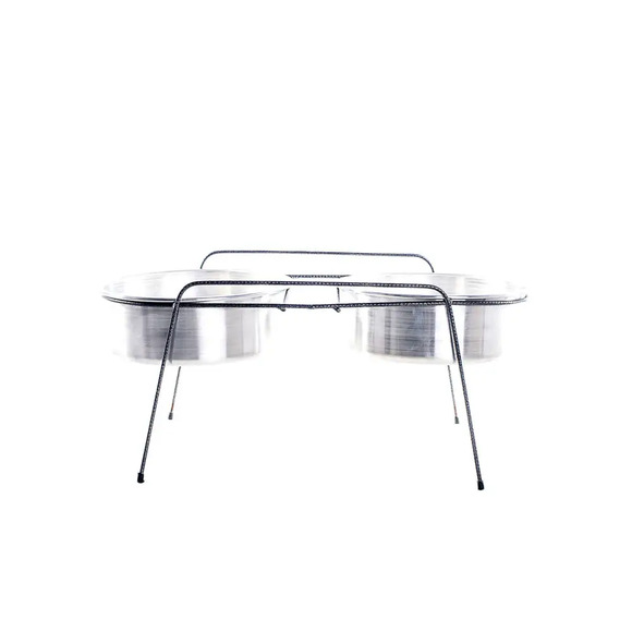 Comedouro Aramado Duplo NF Pet AlumínioSão comedouros duplos idealizados para levar melhor qualidade de saúde e higiene para os pets já que tira as bacias de ração e água do chão.Possuem base de aço e bacias em alumínio. As bacias podem ser retiradas, o que facilita sua higienização. Com suporte que vai deixar o comedouro longe do chão e o pet se alimentando na postura correta.Os melhores Comedouros Duplos com preço especial e maior qualidade.Medidas aproximadasTamanhoComprimento (cm)Largura (cm)Altura (cm)Capacidade (L)Mini331611,51,2 (0,6 cada)P4120,5153 (1,5 cada)M5024195 (2,5 cada)G5526,5267,2 (3,6 cada)