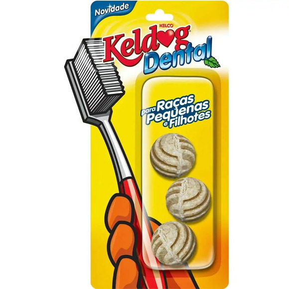 Keldog Dental Bolinha C/3 - KelcoDESCRIÇÃO:Keldog Dental Bolinha foi especialmente desenvolvido para auxiliar na higiene bucal do seu cão enquanto ele se diverte. Feito para raças pequenas ou filhotes com mais de 4 meses, contribui no controle do tártaro, massageando as gengivas e limpando os dentes. Em formato bolinha divertido e prático.MODO DE USAR:Para ajudar o cão a manter dentes e gengivas saudáveis, deixe-o brincar comum Keldog Dental todos os dias.Recomendado como agrado, recompensa ou prêmio. ESPÉCIES INDICADAS:CãesAPRESENTAÇÃO:Embalagem com 03 Bolinhas.MARCA:KelcoUSO VETERINÁRIO.REGISTRADO NO MINISTÉRIO DA AGRICULTURA SOB O Nº 0002/3258.ORIENTAÇÕES:Conservar em local seco, fresco, ao abrigo da luz solar e fora do alcance de crianças e animais.Armazenar entre 15°C a 30°C.Não guardar o produto junto de alimentos, bebidas, produtos de higiene ou domésticos.Não reutilizar a embalagem vazia.Leia a bula ou informações descritas na embalagem.Foto Meramente ilustrativa.Descrição sob responsabilidade do fabricante, retirada diretamente do site do fabricante ou do próprio rótulo do produto.Caso haja diferença entre as informações aqui apresentadas e rótulo ou bula, prevalecerá sempre a informação do rótulo ou bula que acompanha o produto.