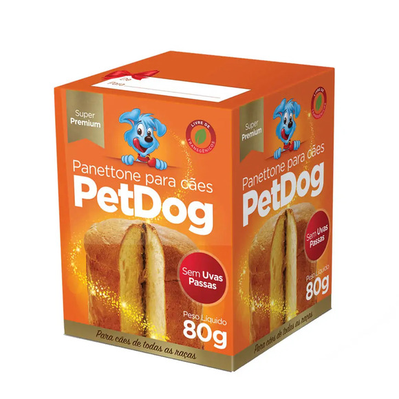 Panettone Tradicional Cães Pet DogVocê já comeu um panetone e pensou em dar um pedacinho ao seu cão? Cuidado! Esse gesto de carinho pode não ser o presente natalino que o seu cão realmente deseja. Mas sabia que existe um panetone para cachorro feito especialmente para ele?Sim, a boa notícia é que existe panettone para cachorro. Feito especificamente para os cães, a sobremesa pode ser considerada como um petisco.Leve um pedacinho do Natal para o seu melhor companheiro.Os Panettone Tradicional para Cães Pet Dog são macios e saborosos, mas acima de tudo respeitam o metabolismo do cachorro, não agredindo seu organismo.Feito com ingredientes selecionados, é um ótimo agrado na época do Natal.Pode ser oferecido como um mimo e não tem nenhuma restrição quanto a raças, idades ou tamanho dos animais.Mas atenção! Este alimento não substitui a ração ou a refeição habitual do seu pet. Ele é apenas um petisco.Ingredientes:Farinha de trigoFarinha de trigo integral Ovo integral em póAçúcarDextroseGordura vegetal hidrogenadaFermento biológicoSal comumLecitina de sojaAroma de PanettoneSorbato de potássioAditivo antioxidante (BHT e BHANa , você encontra o Panettone Tradicional para Cães Pet Dog com preço especial.