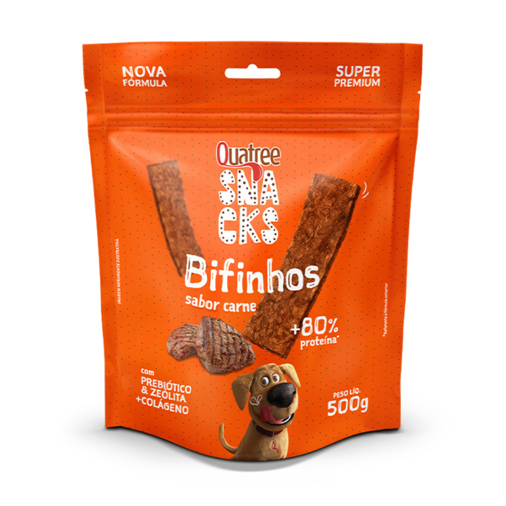 O Quatree Snacks Bifinho sabor Carne 500g é a escolha perfeita para agradar seu cão com muito sabor e qualidade no dia a dia.