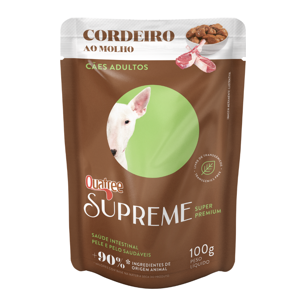 A Ração Úmida Quatree Supreme Cordeiro para Cães Adultos é uma opção de alimentação completa e balanceada, desenvolvida para ser servida diariamente ao seu querido companheiro de quatro patas. Elaborada com cuidado e qualidade, essa ração é feita a partir de ingredientes selecionados que passam por um delicado processo de cozimento a vapor, resultando em uma textura macia e uma experiência diferenciada para o seu pet.